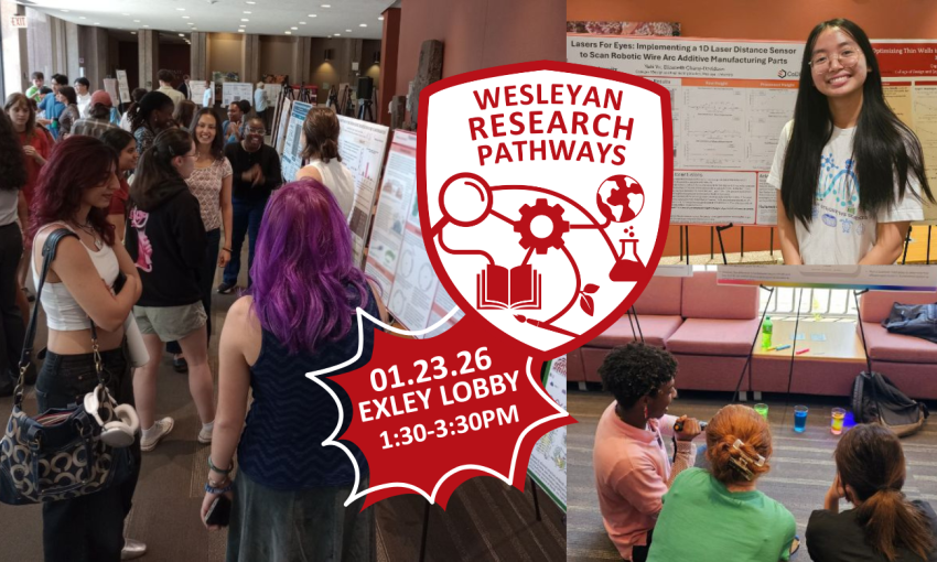 Research Pathways is a campus event designed to help undergraduate students explore research at Wesleyan, with a focus on opportunities available this spring and over the summer.